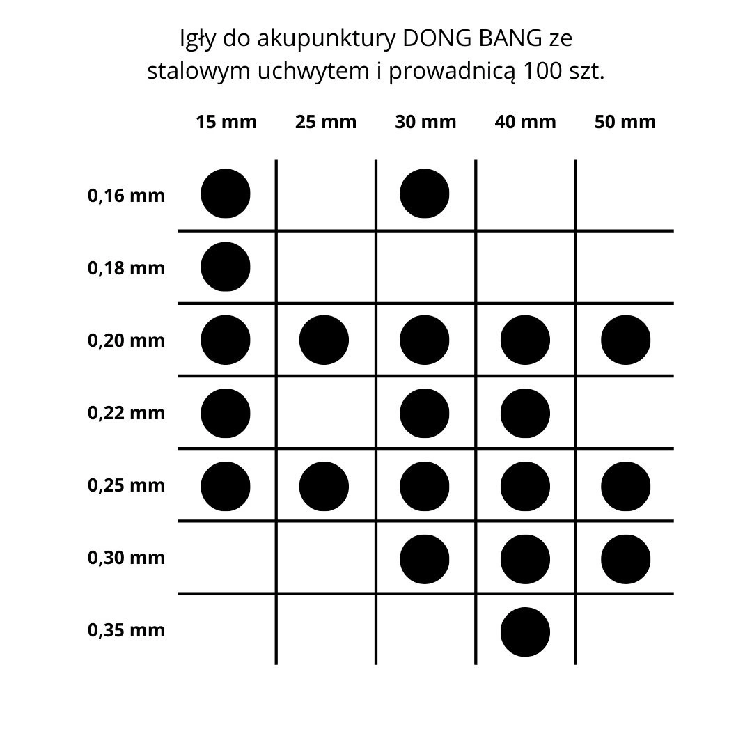 Jehly DONG BANG s ocelovou rukojetí a vodítkem  - nejkvalitnější originální korejské akupunkturní jehly. Navrženo s ohledem na bezpečnost – každá jehla prošla během výroby přísnou kontrolou kvality, což znamená, že jehly Dong Bang jsou spolehlivé a bezpečné. Pouzdro z chirurgické oceli je odolné, což zajišťuje, že se při používání nezlomí.