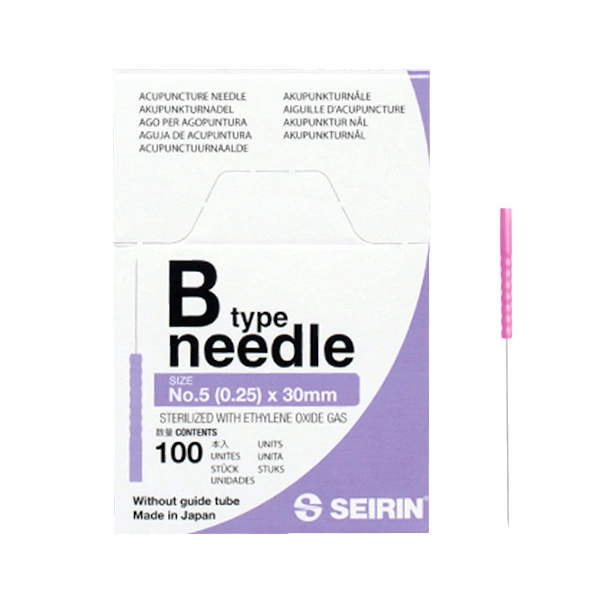 Akupunkturní jehly SEIRIN B-TYPE s plastovým držákem bez vodicí trubičky, 100 ks.
