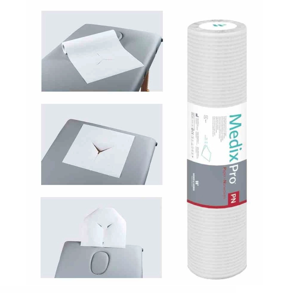 Tento produkt lze použít všude tam, kde jsou masážní lehátka. Obličejový základ je vyroben z vrstvy papíru a netkané textilie. Díky této dokonalé kombinaci je velmi savý a odolný a zároveň měkký a jemný. To má pozitivní vliv na komfort používání. Na roli je 50 opěrných segmentů. Každý z nich má rozměr 31 cm x 33 cm a má speciální výřez na obličej, který je univerzální a kompatibilní se všemi masážními stoly.