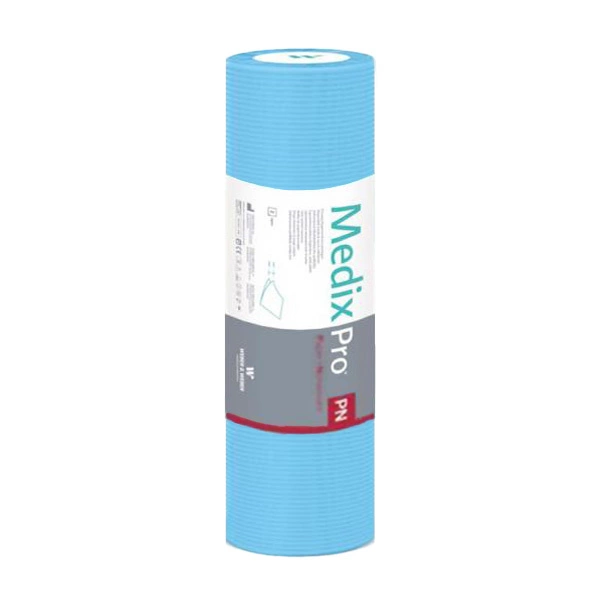 Zdravotní podložka MedixPro je velmi odolná, lehká a příjemná na dotek, a to díky originální kombinaci tenké vrstvy netkané textilie a měkkého hedvábného papíru. Materiál je velmi savý. Zdravotní podložka má každých 50 cm prohlubně, které umožňují účinné odtrhávání kousků. Na roli je 50 m výrobku. Roletová podložka je jednorázová a lze ji použít jako prostěradlo na masážní stoly nebo zdravotní židle.