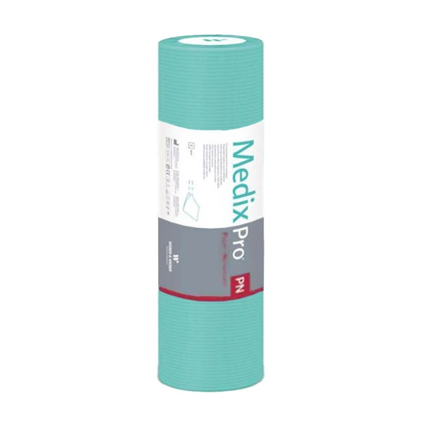 Zdravotní podložka MedixPro je velmi odolná, lehká a příjemná na dotek, a to díky originální kombinaci tenké vrstvy netkané textilie a měkkého hedvábného papíru. Materiál je velmi savý. Zdravotní podložka má každých 50 cm prohlubně, které umožňují účinné odtrhávání kousků. Na roli je 50 m výrobku. Roletová podložka je jednorázová a lze ji použít jako prostěradlo na masážní stoly nebo zdravotní židle.