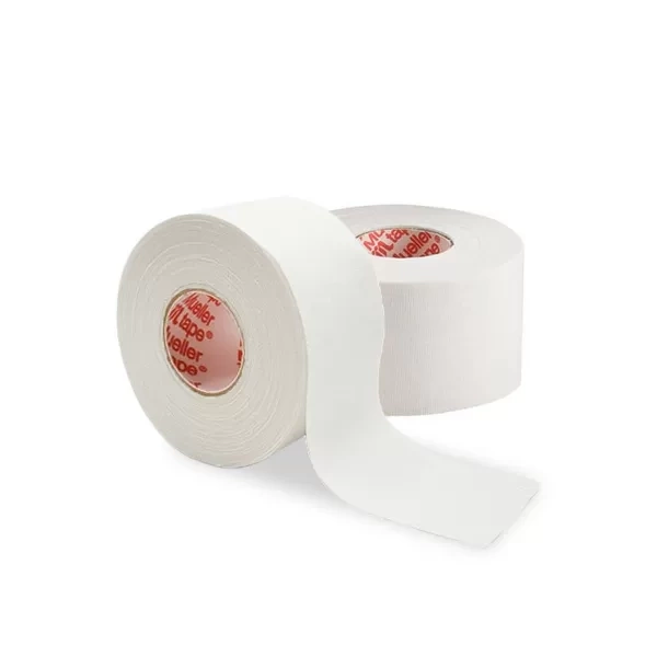 Mueller M-Tape je vysoce kvalitní rigidní tejp, který se používá ve sportu a při rehabilitaci poškozených tkání. Je vyroben ze 100% bavlny, impregnované oxidem zinečnatým. Hypoalergenní lepidlo nanesené po celé délce pásky zajišťuje velmi silnou přilnavost mezi jednotlivými vrstvami.