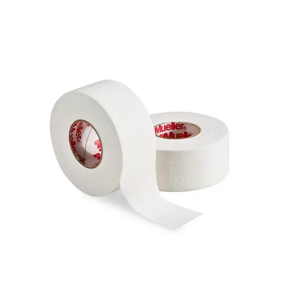 Mueller M-Tape je vysoce kvalitní rigidní tejp, který se používá ve sportu a při rehabilitaci poškozených tkání. Je vyroben ze 100% bavlny, impregnované oxidem zinečnatým. Hypoalergenní lepidlo nanesené po celé délce pásky zajišťuje velmi silnou přilnavost mezi jednotlivými vrstvami.
