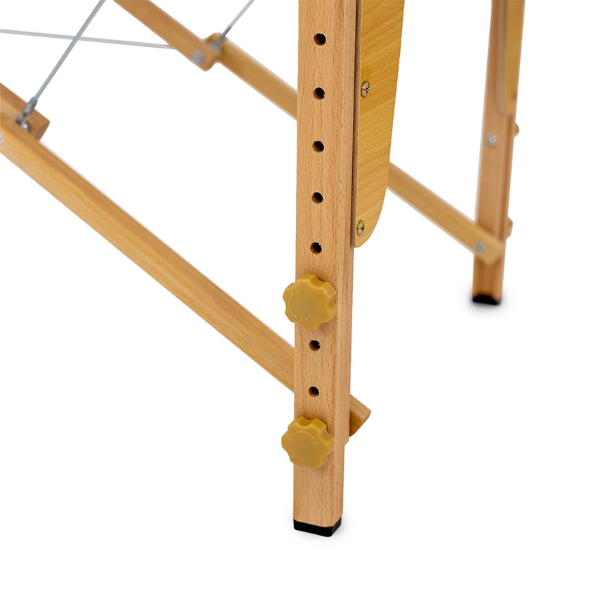 Dřevěná konstrukce Základna stolu z přírodního dřeva je klasickým konstrukčním řešením u přenosných stolů. Skvěle se hodí jak pro použití v ordinaci, tak při práci mobilního terapeuta. Systém lan umožňuje rychlé skládání/rozkládání stolu a také stabilitu během procedur. Blat je pokrytý PVC materiálem, který zajišťuje snadnou údržbu a odolnost povrchu. |
