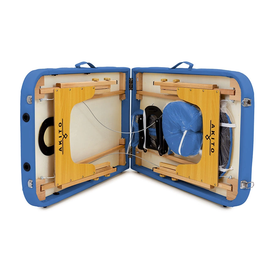 Stůl Teja Akito je vybaven pohodlným, nastavitelným polštářem, rámem na polštář, přední opěrkou na ruce a bočními opěrkami, což zvyšuje pohodlí klienta při různých typech procedur. Navíc praktický obal usnadňuje transport a skladování stolu, což ho činí ideálním řešením pro mobilní terapeuty!