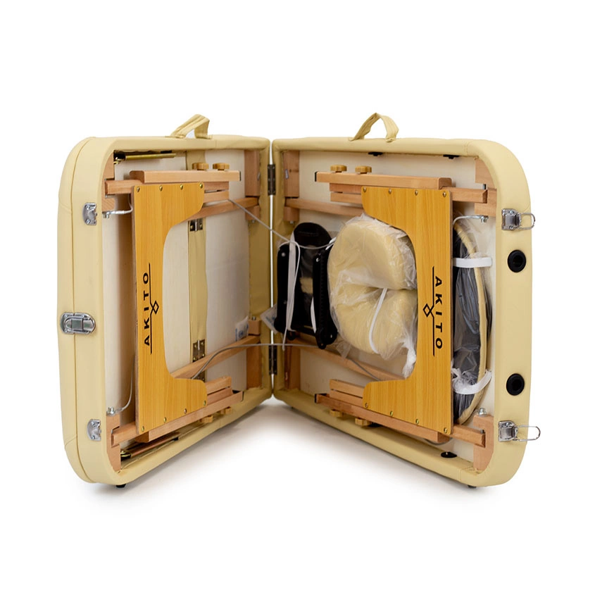 Dřevěný masážní stůl Kora Akito je třísegmentový skládací model značky Akito, vyrobený z přírodního dřeva, který kombinuje vytříbený design s funkčností. Jeho pevná konstrukce zajišťuje stabilitu a dlouhou životnost, což je klíčové pro profesionální ordinace. Ergonomické prvky, jako je nastavitelná výška, silná pěnová výplň a zaoblené rohy, zaručují pohodlí jak pacientům, tak terapeutům. Deska stolu je potažena snadno čistitelným PVC potahem, což usnadňuje každodenní údržbu hygieny.